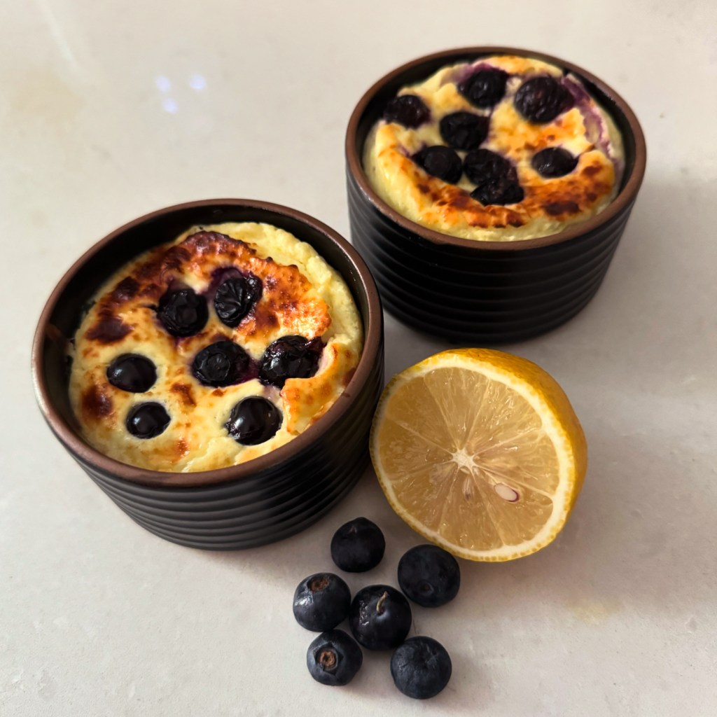 Instructions Blend cottage cheese, yoghurt, egg, lemon juice and sweetener in a personal blender. Divide into 2 small ramekins Top with blueberries Bake at 320F for 12-15 mins – the cheesecakes will puff up so don’t fill the ramekins more than halfway Allow to cool and then serve with more blueberries and Greek yogurt